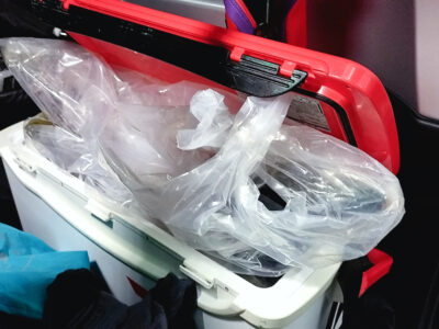クーラーボックスにはそのまま入りきらず….