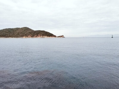 眼前に島がある事で水道になっており